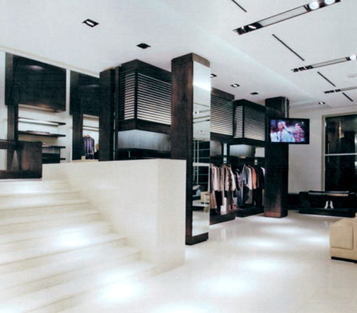 Apparel store in Ufa with granite floor and wood coating finishes.