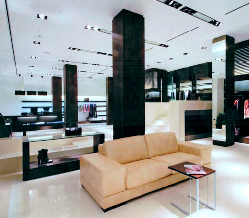 Apparel store in Ufa with granite floor and wood coating finishes.
