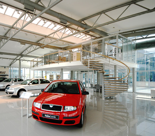 The complex consists of three buildings, one of which is a car show room, second is an office building with a car workshop at the ground floor and offices at other floors. The car show room was built according to the Skoda company standards.