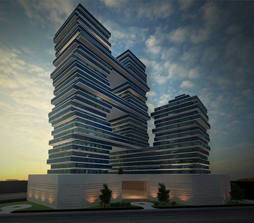 Residential towers with a pool and a tennis court at the podium. Designed as a number of layers, same in size but different in position, making an identity for each floor with large terraces and canopies. Podium is used for offices and shops while in the basement are three levels of parking. Towers are presenting new, contemporary way of living in the ancient city of Arbil.