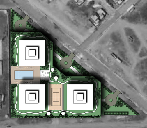 Residential towers with a pool and a tennis court at the podium. Designed as a number of layers, same in size but different in position, making an identity for each floor with large terraces and canopies. Podium is used for offices and shops while in the basement are three levels of parking. Towers are presenting new, contemporary way of living in the ancient city of Arbil.