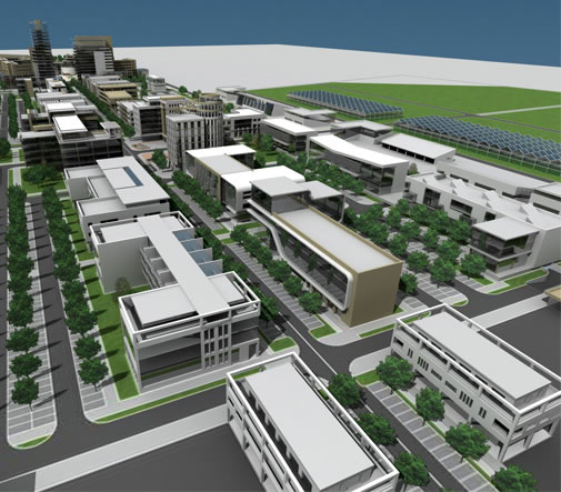A pilot project for investor. Analysis of possibilities on a business complex which is positioned between the high-way and the Belgrade airport. There are 45 buildings - offices, serviced apartments, warehouses, super-markets, a hotel, tennis courts and one golf course.