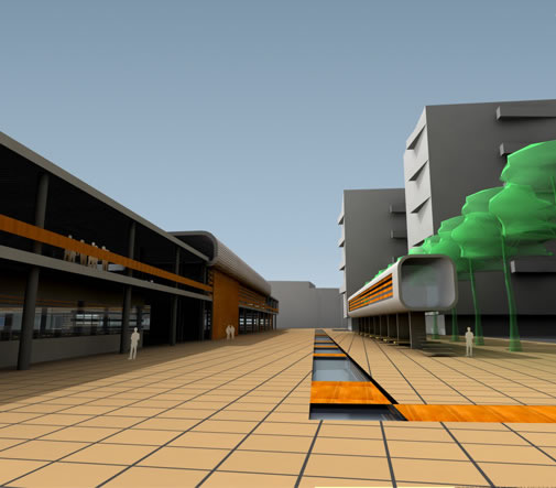 Green market in the centre of the city with the stalls in the middle and the shops outside, towards the streets. The main building has four floors, there are offices, shops and halls. The underground garage has two levels, one of which is for tradesmen the other being for customers.