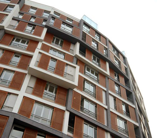 Residential building in the heart of the city with the river views, roof gardens and the park next to the building. 103 flats and 17 serviced apartments, shops at the ground floor and a 3 level underground garage.