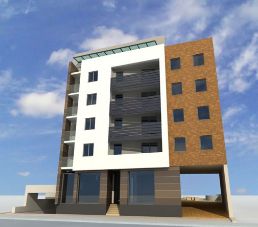 Residential building has a specific position in relation to other buildings because of the Sun. It is positioned towards the inside of the block, not towards the street. There is a park for children, ground floor for shops and underground garage.